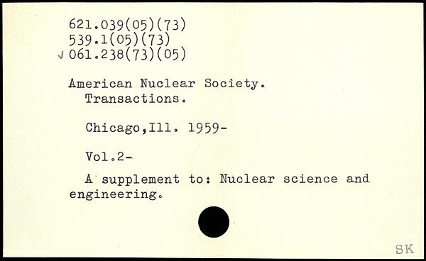 American Nuclear Society. Transactions. Chicago,111. 1959“