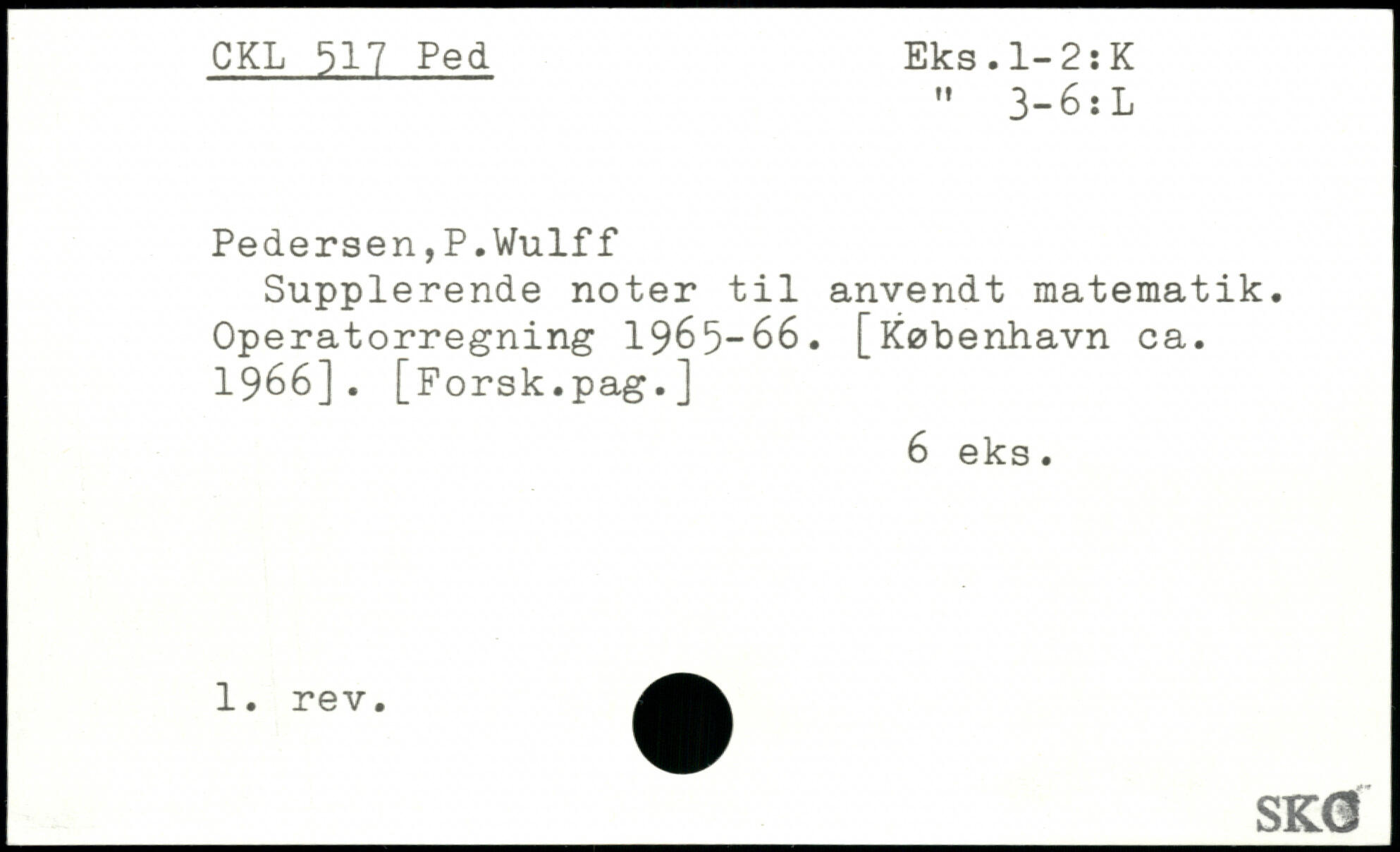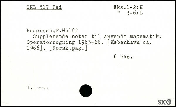 Pedersen,P.Wulff Supplerende noter til anvendt matematik. Operatorregning 19^5— 66. [København ca. 1966]. [Forsk.pag.]