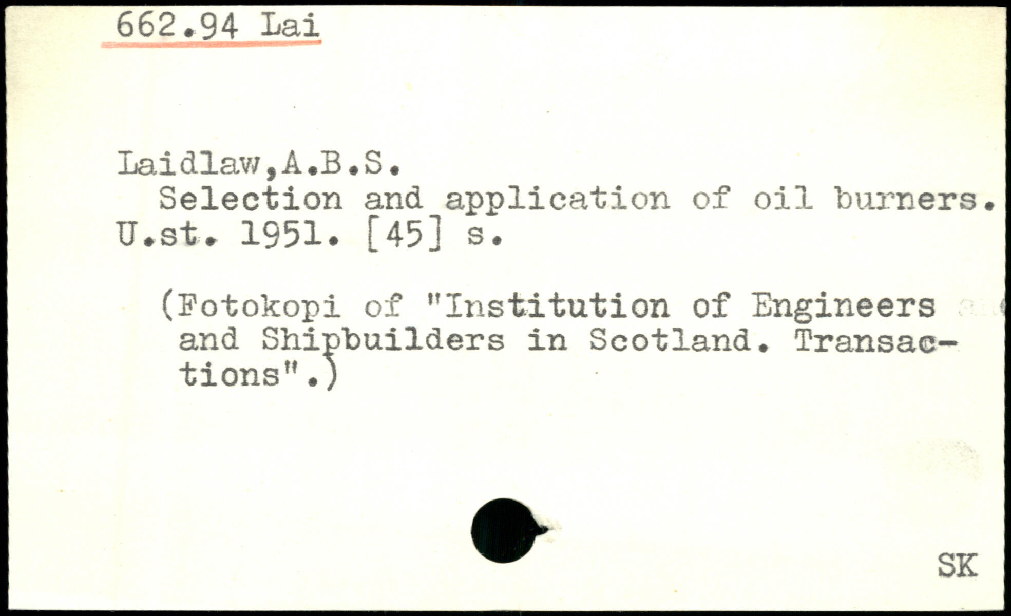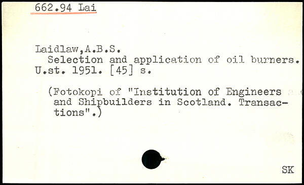 Selection and application of oil burners. TJ.st. 1951. [45] s. (Fotokopi of "Institution of Engineers and Shipbuilders in Scotland. Transactions" .)
