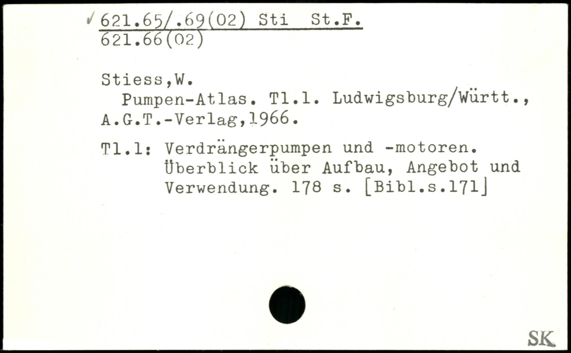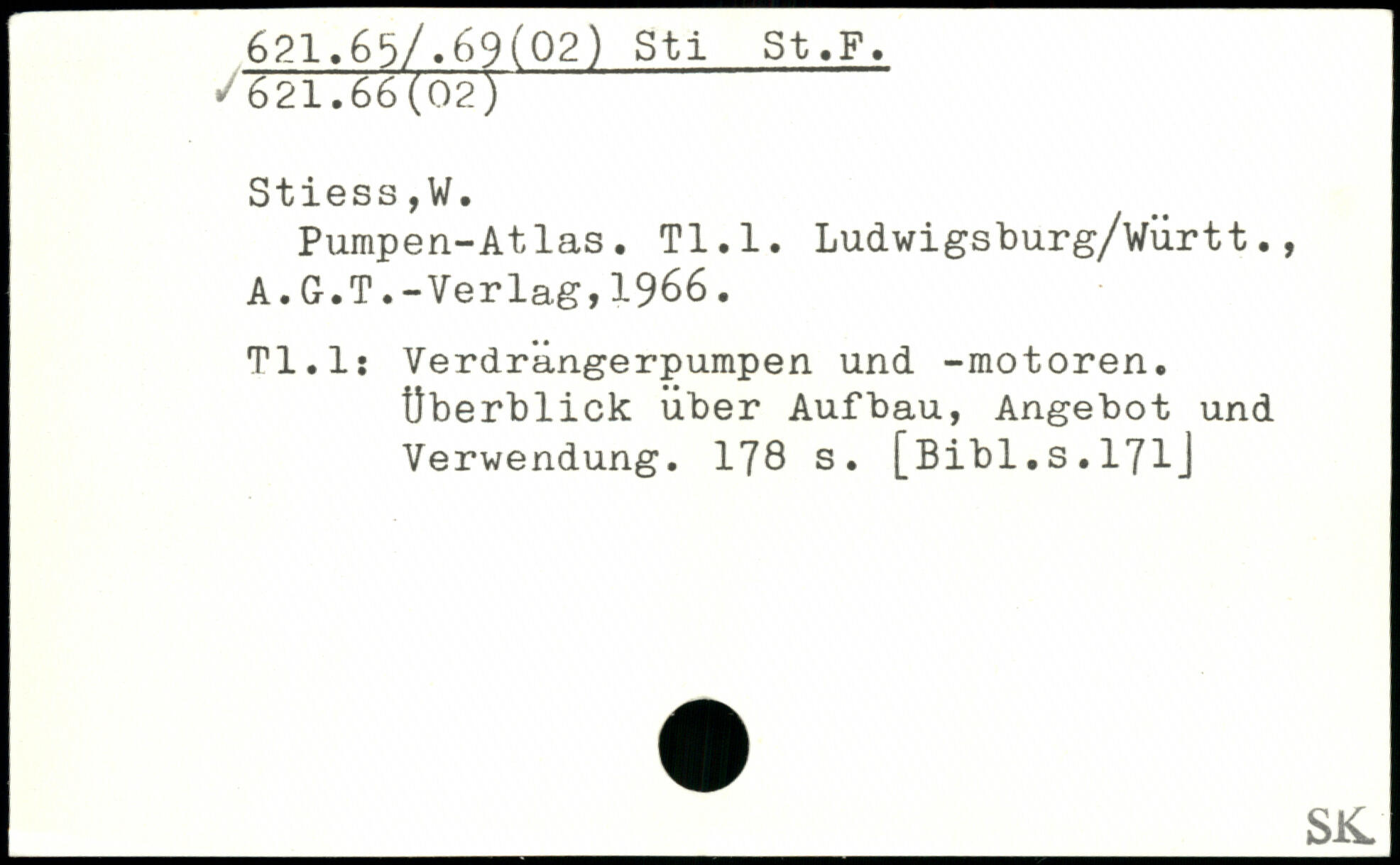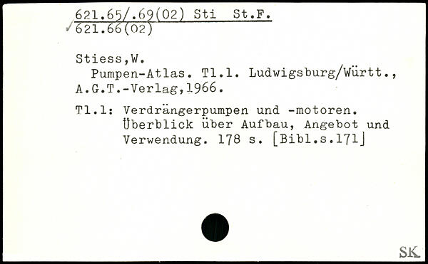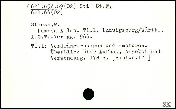 Pumpen-Atlas. Tl.l. Ludwigsburg/württ., A.G.T.-Verlag,1966. Tl.l: Verdrängerpumpen und -motoren. Überblick über Aufbau, Angebot und Verwendung.