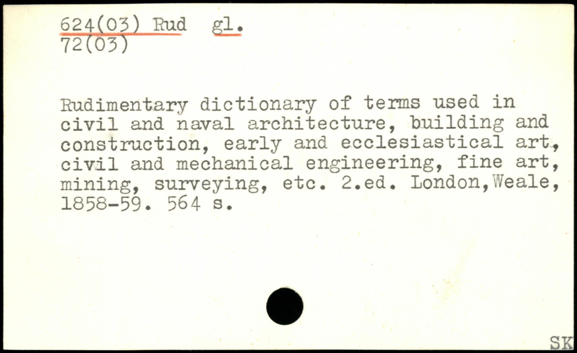 Rudimentary dictionary of terms used in civil and naval architecture, building and construction, early and ecclesiastical art, civil and mechanical engineering, fine art, mining, surveying, etc.