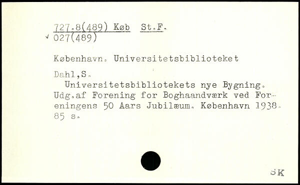 København, Universitetsbibliotekst Dahl,S, Universitetsbibliotekets nye Bygning, Udg,af Forening for Boghaandværk ved Foreningens 50 Aar s Jubilæum, København ’1938