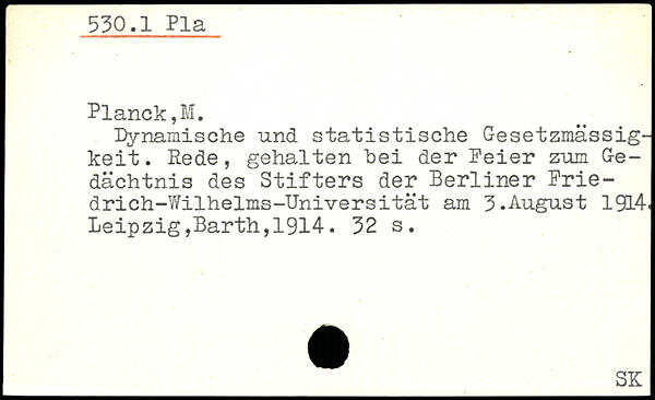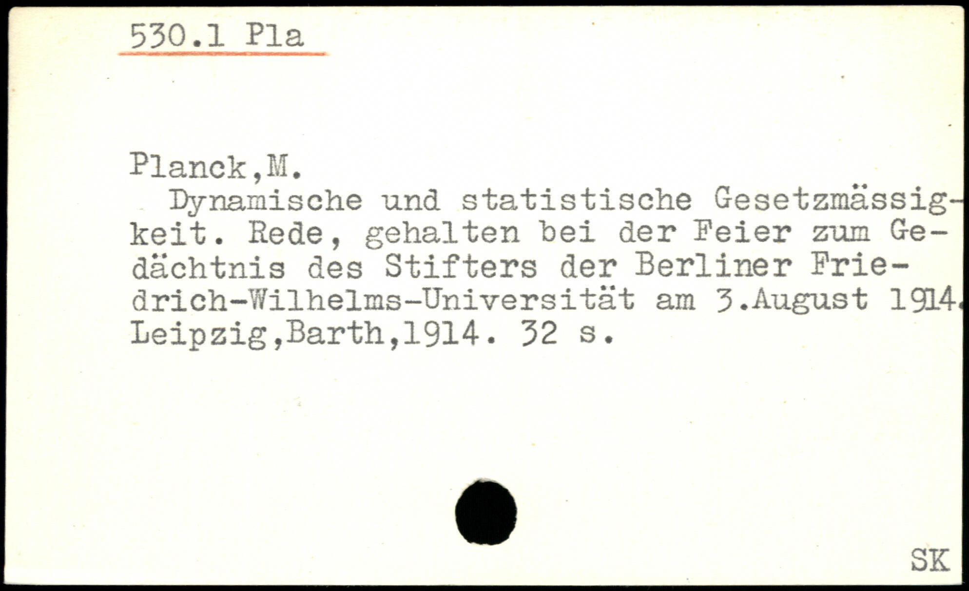 Dynamische und statistische Gesetzmässigkeit. Rede, gehalten hei der Feier zum Gedächtnis des Stifters der Berliner Frie-drich-Wilhelms-TJniversität am 5.August 1914.
