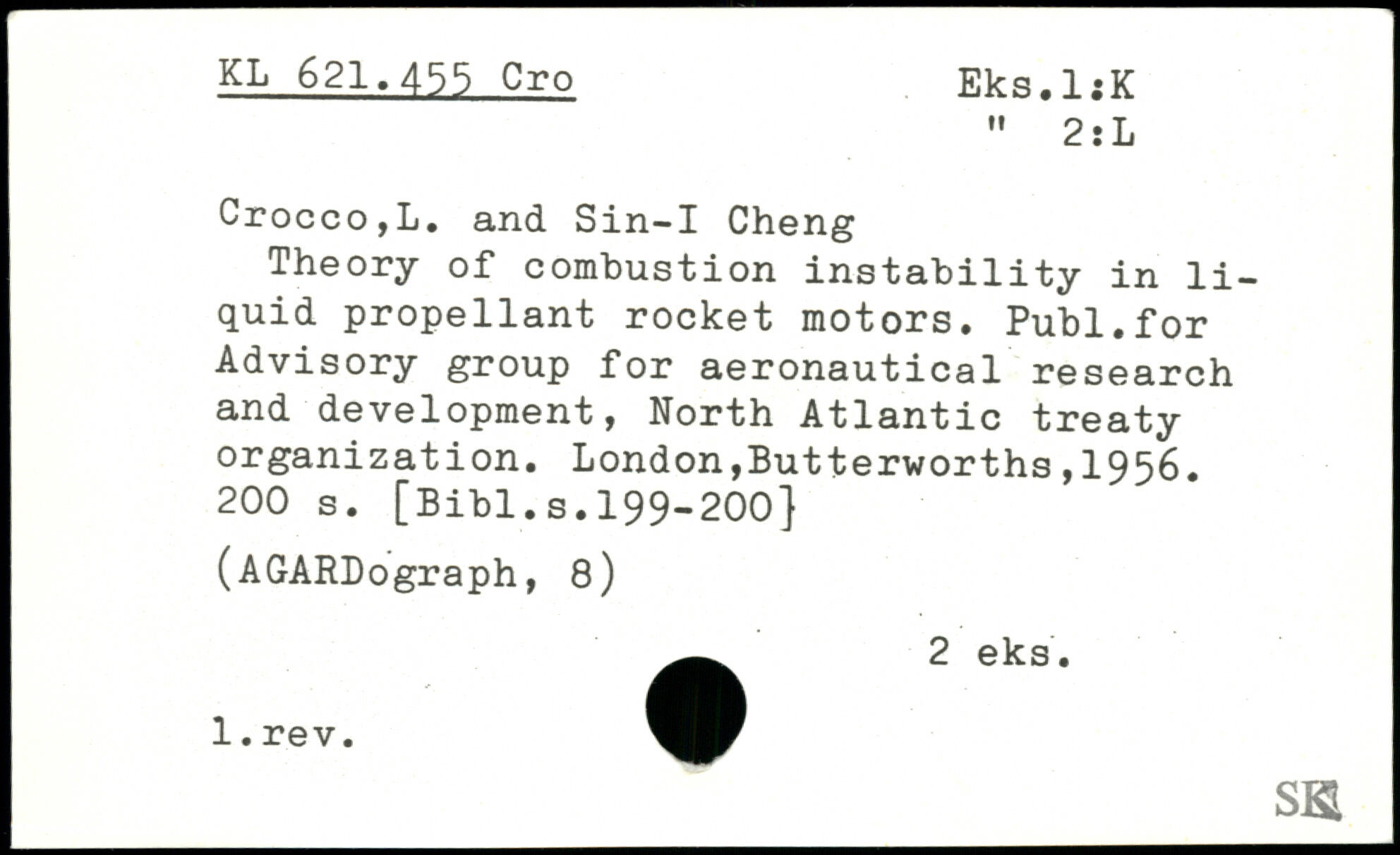 Crocco,L. and Sin-I Cheng Theory of combustion instability in liquid propellant rocket motors. Publ.for Advisory group for aeronautical research and development, North Atlantic treaty organization.