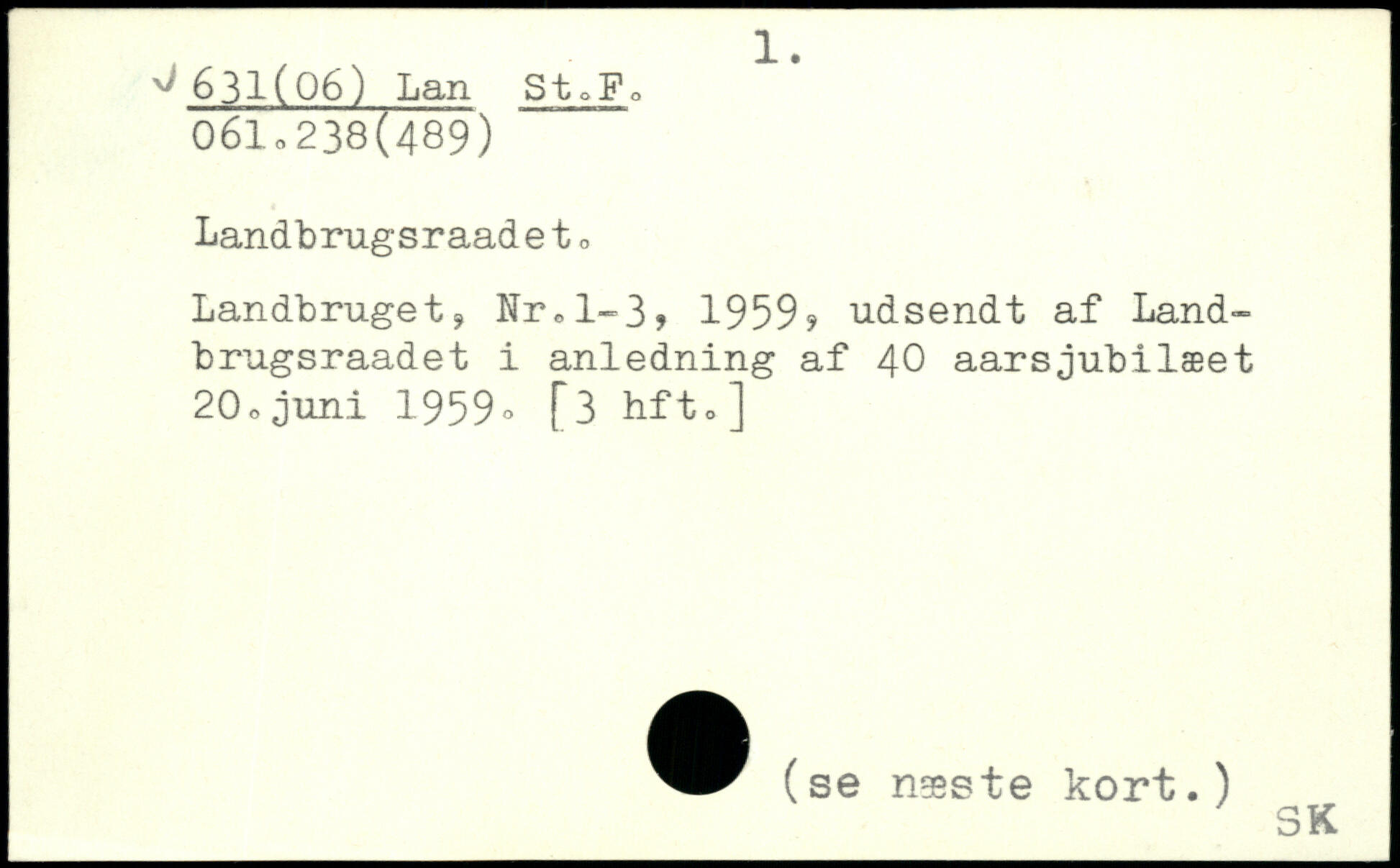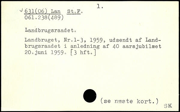 Landbruget, Nr.1-3, 1959? udsendt af Land-brugsraadet i anledning af 40 aarsjubilæet 20o juni 1959o [3 hft.]