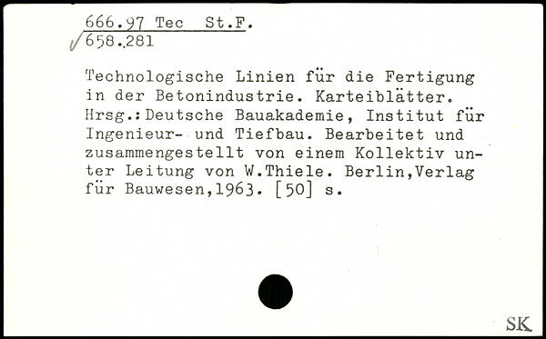 Technologische Linien für die Fertigung in der Betonindustrie. Karteiblätter. Hrsg.:Deutsche Bauakademie, Institut für Ingenieur- und Tiefbau. Bearbeitet und zusammengestellt von einem Kollektiv unter Leitung von W.Thiele.