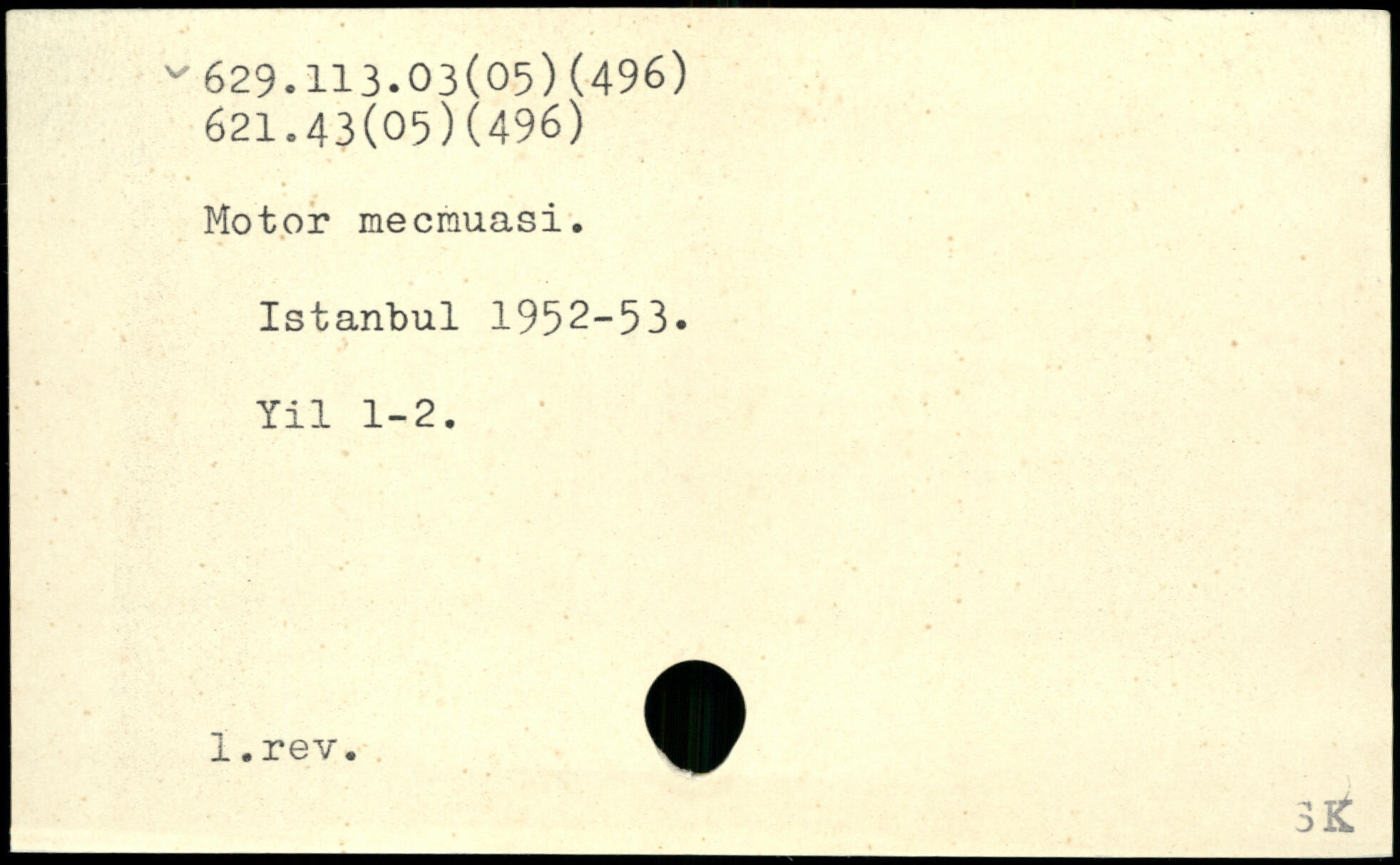 Motor mecniuasi. Istanbul 1952-53. Yil 1-2. 3 £