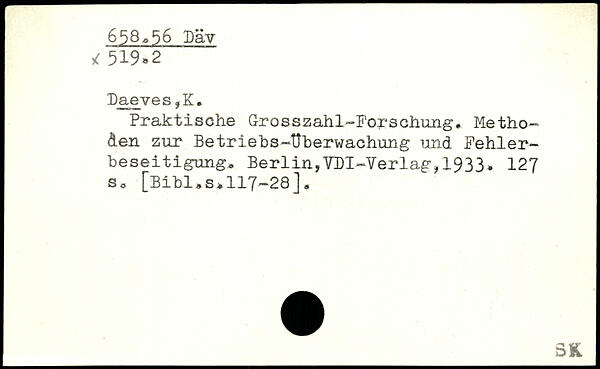 Praktische Grosszahl-Forschung. Methoden zur Betriebs-Überwachung und