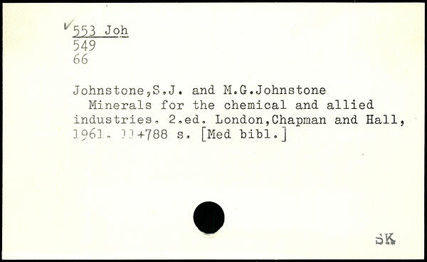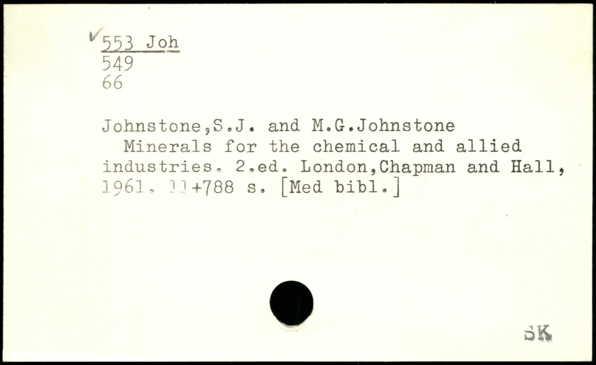 Johnstone,S,J. and M.G.Johnstone Minerals for the chemical and allied industries