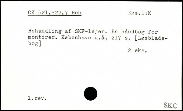 Behandling af SKF-lejer. En håndbog for montører. København u.å