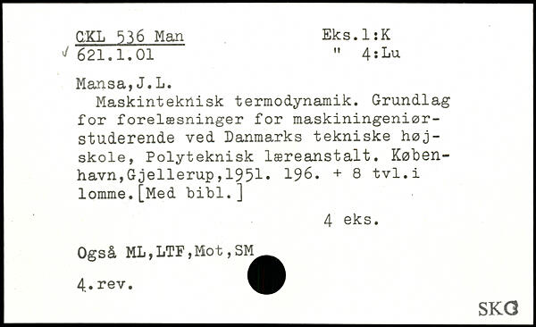 Maskinteknisk termodynamik. Grundlag for forelæsninger for maskiningeniørstuderende ved Danmarks tekniske højskole, Polyteknisk læreanstalt.