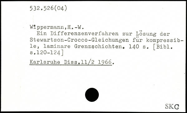 W1ppermann,H.-W. Ein Differenzenverfahren zur Losung der Stewartson-Crocco-Gleichungen für kompressib-le, laminare Grenzschichten.