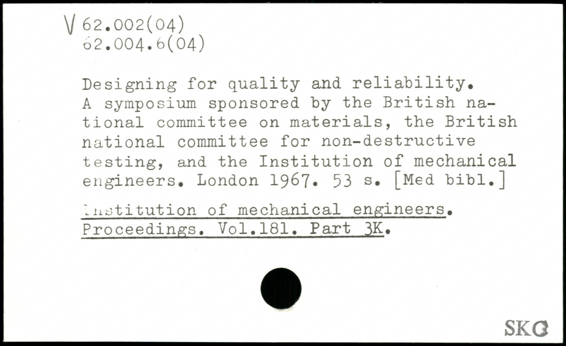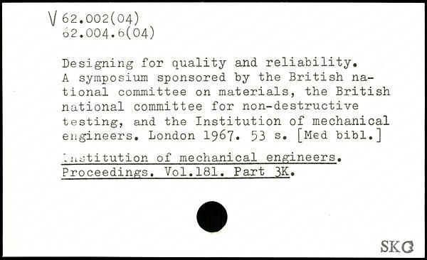 Designing for quality and reliability. A symposium sponsored by the British national committee on materials, the British national committee for non-destructive testing, and the Institution of mechanical engineers.