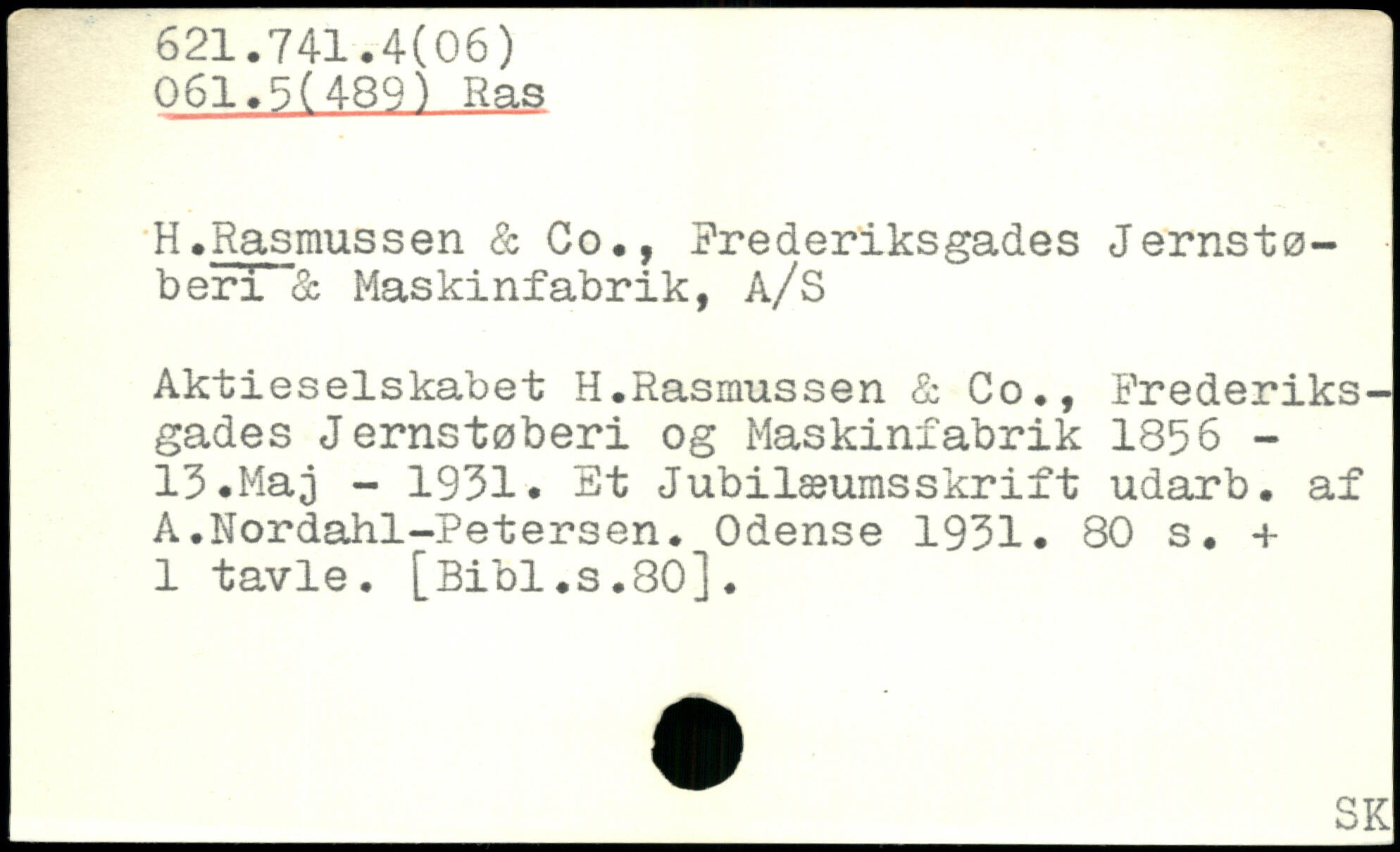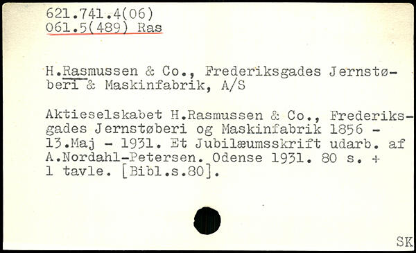H.Rasmussen & Co., Frederiksgades Jernstøberi & Maskinfabrik, A/S Aktieselskabet H.Rasmussen & Co., Frederiks— gades Jernstøberi og Maskinfabrik 1856 -15.Maj - 1931. Et Jubilæumsskrift udarb. af A.Nordahl-Petersen. Odense 1931.