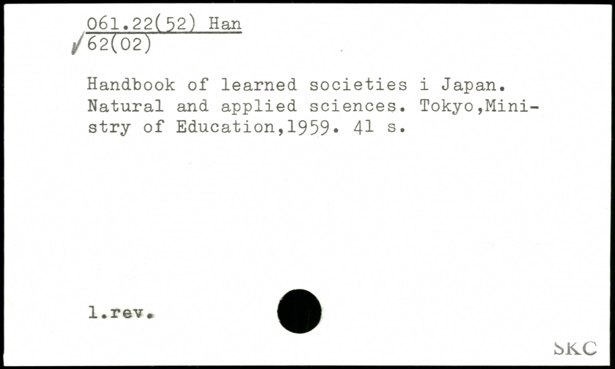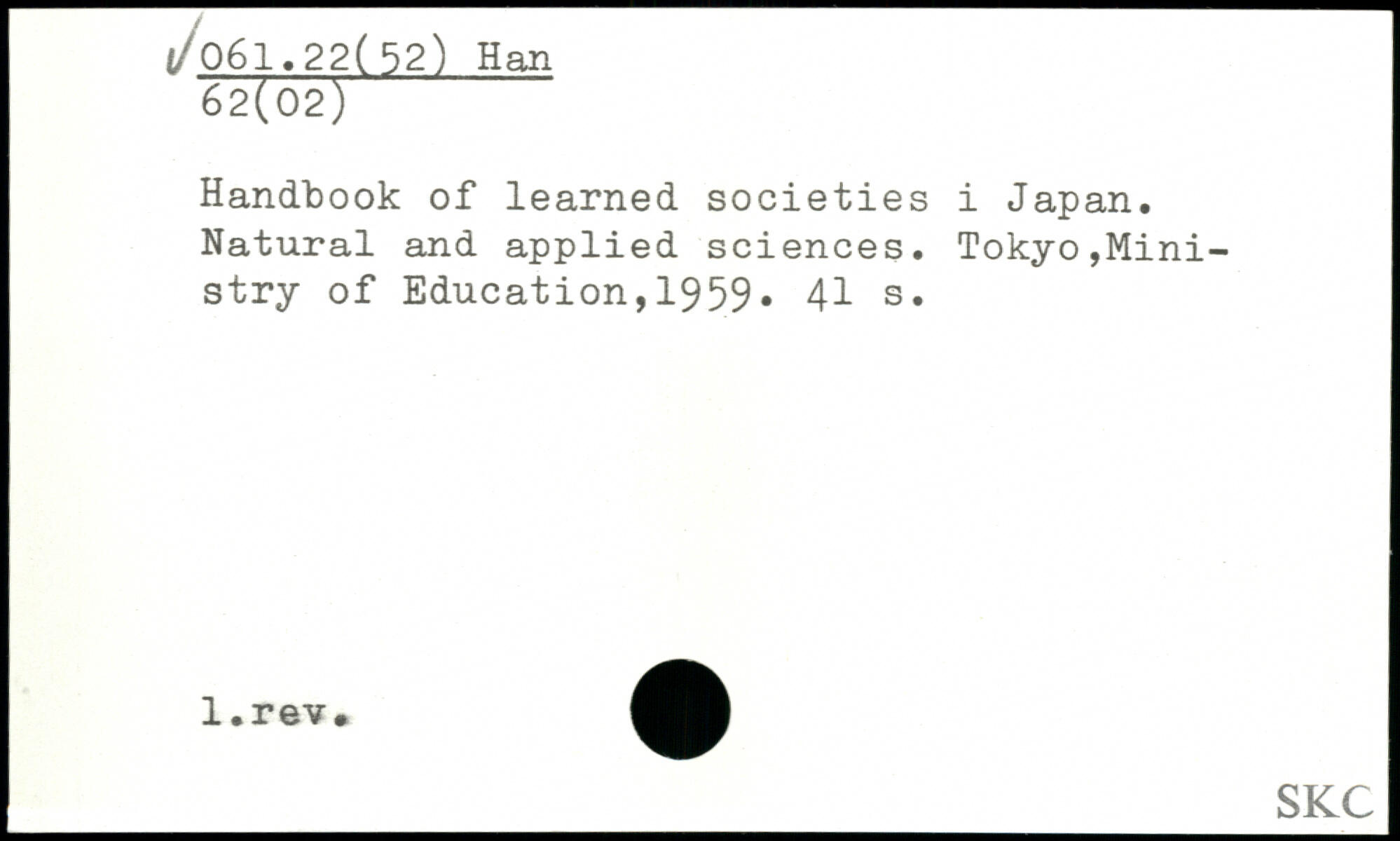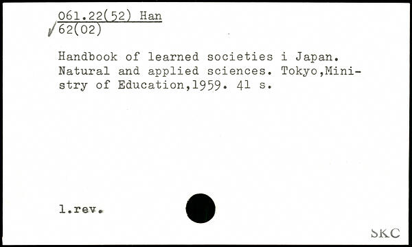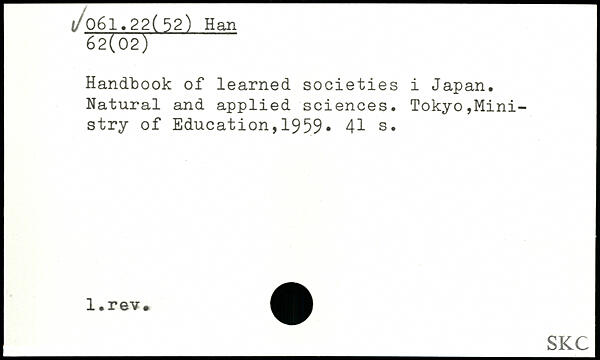 Handbook of learned societies i Japan. Natural and applied sciences.