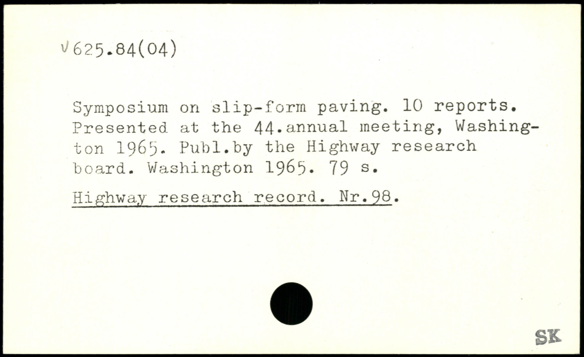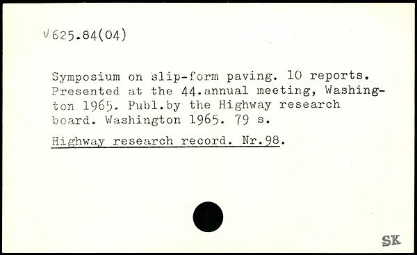 Symposium on slip-form paving. 10 reports. Presented at the 44.annual meeting