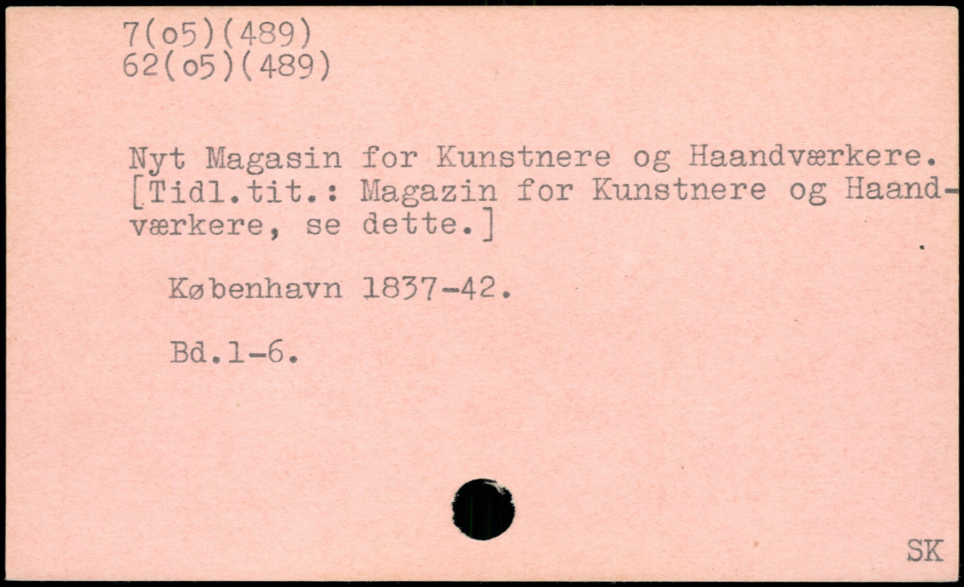 Nyt Magasin for Kunstnere og Haandværkere. [Tidl.tit.: Magazin for Kunstnere og Haandværkere, se dette.]