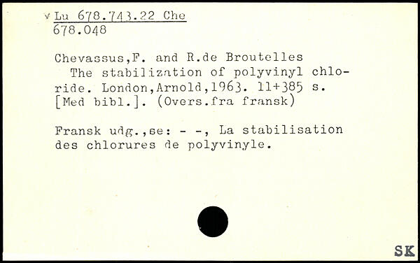 Chevassus,F. and R.de Broutelles The stabilization of polyvinyl chloride.