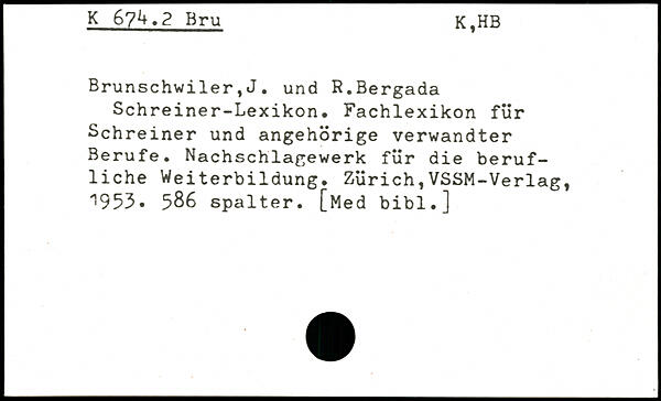 Schreiner-Lexikon, Fachlexikon für Schreiner und angehörige verwandter Berufe. Nachschlagewerk für die berufliche Weiterbildung, Zürich,VSSM-Verlagt .953