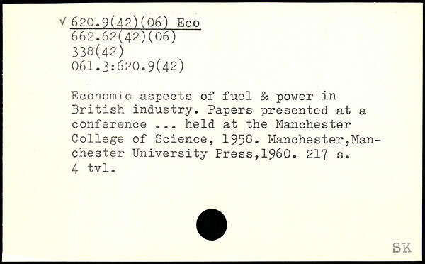 Economic aspects of fuel & power in British industry. Papers presented at a conference ... held at the Manchester College of Science, 1958.