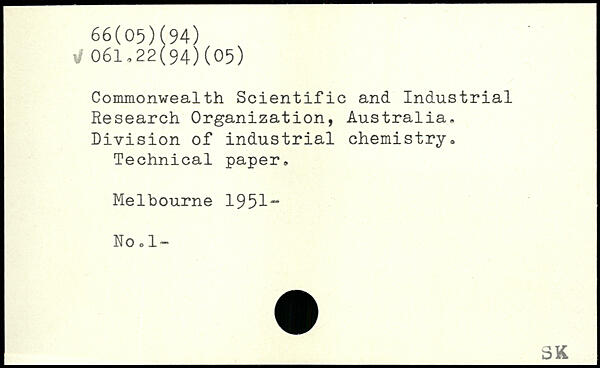 Commonwealth Scientific and Industrial Research Organization, Australia, Division of industrial chemistry, Technical paper. Melbourne 1951- No.1