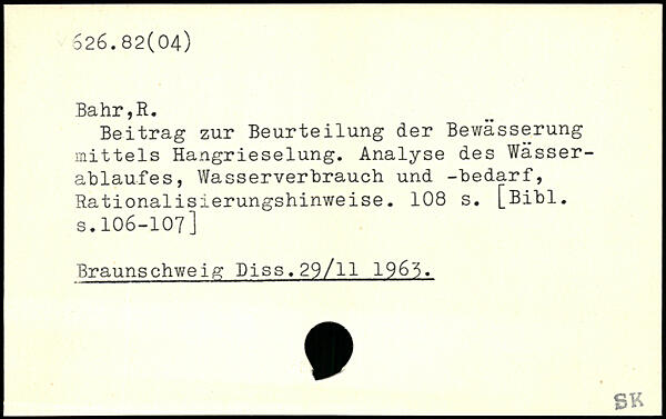 Beitrag zur Beurteilung der Bewässerung mittels Hangrieselung. Analyse des Wässerablaufes, Wasserverbrauch und -bedarf, Rationalisierungshinweise.