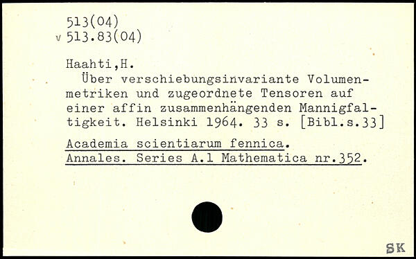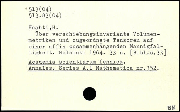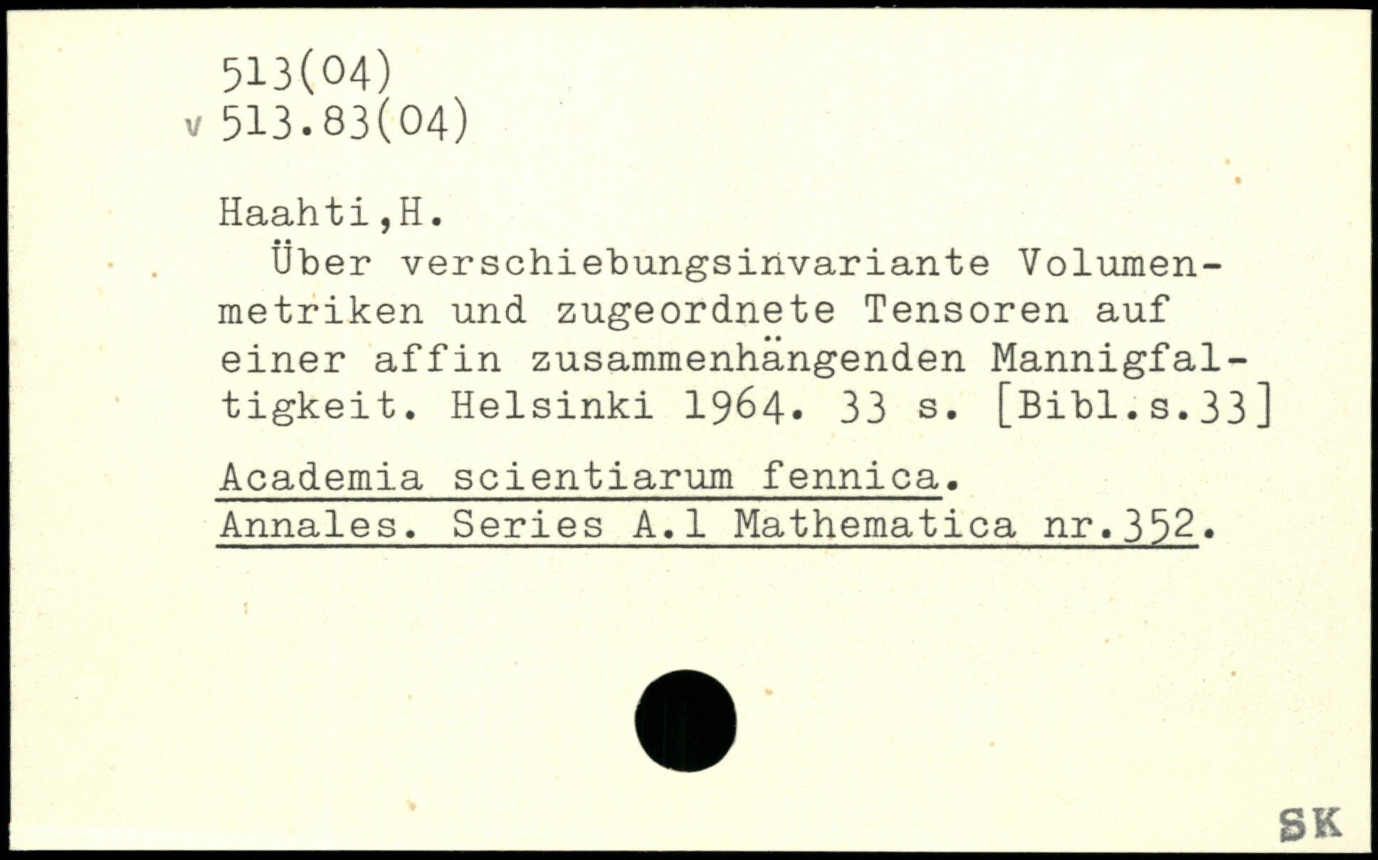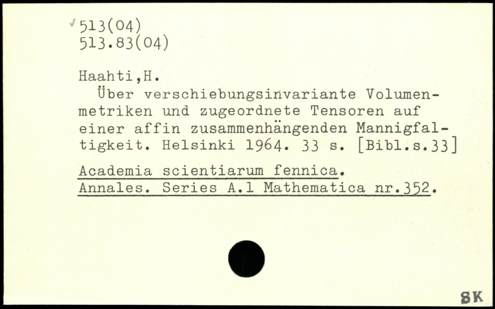 Über verschiebungsinvariante Volumenmetriken und zugeordnete Tensoren auf einer affin zusammenhängenden Mannigfaltigkeit.