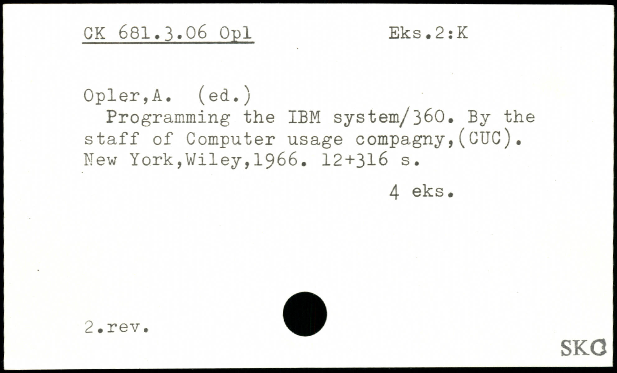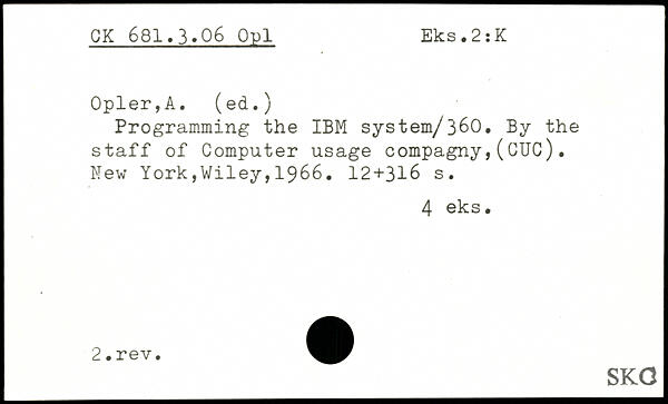 0pler,A. (ed.) Programming the IBM system/360. By the staff of Computer usage compagny,(OUG).