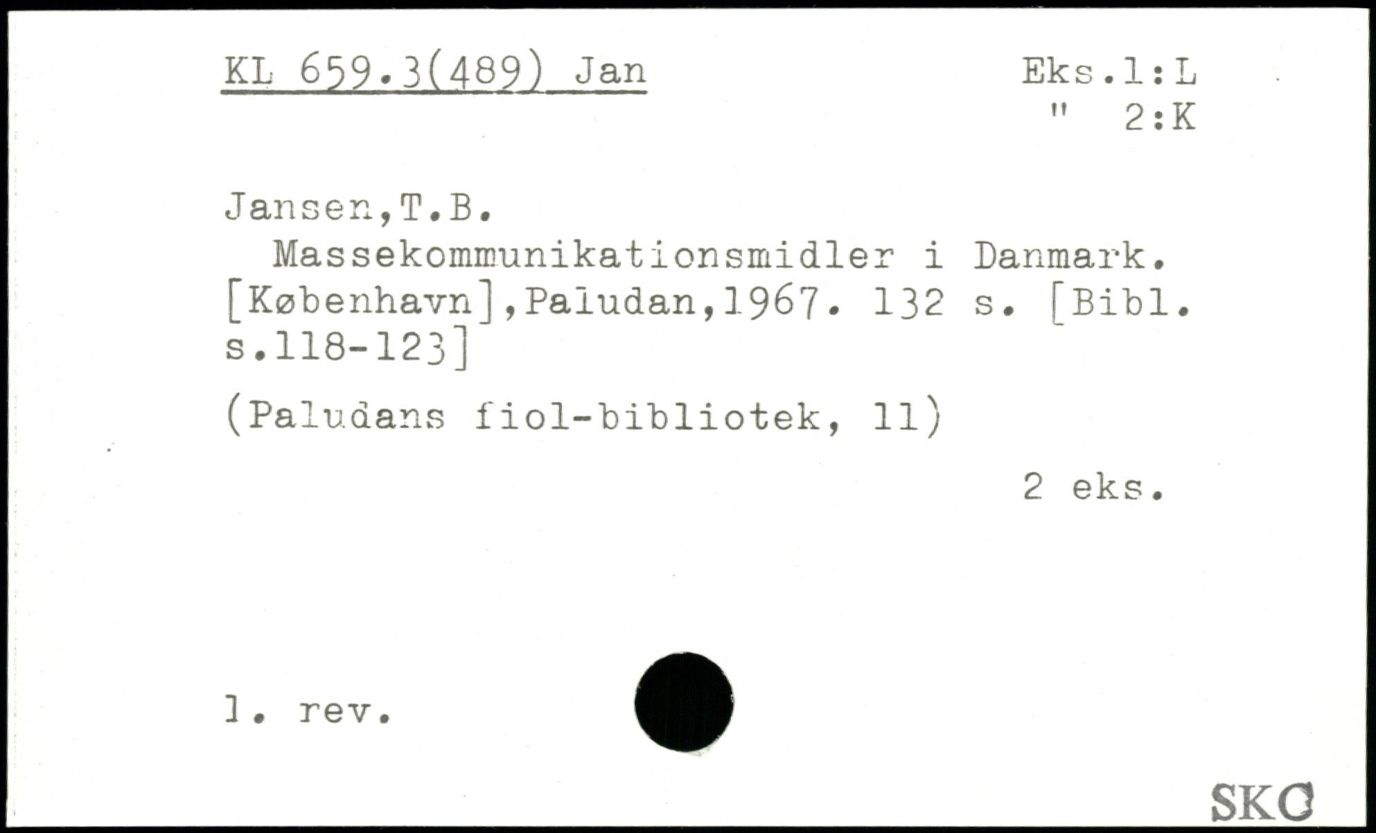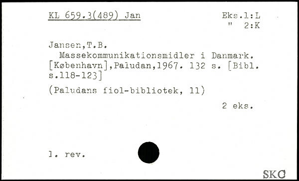 Massekommunikationsmidler i Danmark. [København],Paludan,1967.