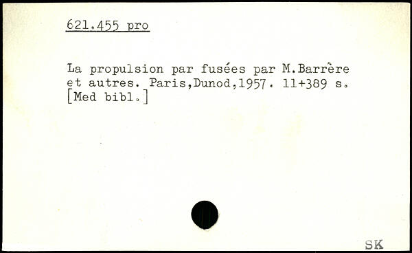 La propulsion par fusées par M.Barrére et autres.