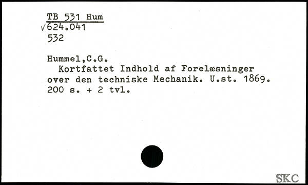 Kortfattet Indhold af Forelæsninger over den techniske Mechanik. U.st. 1869.