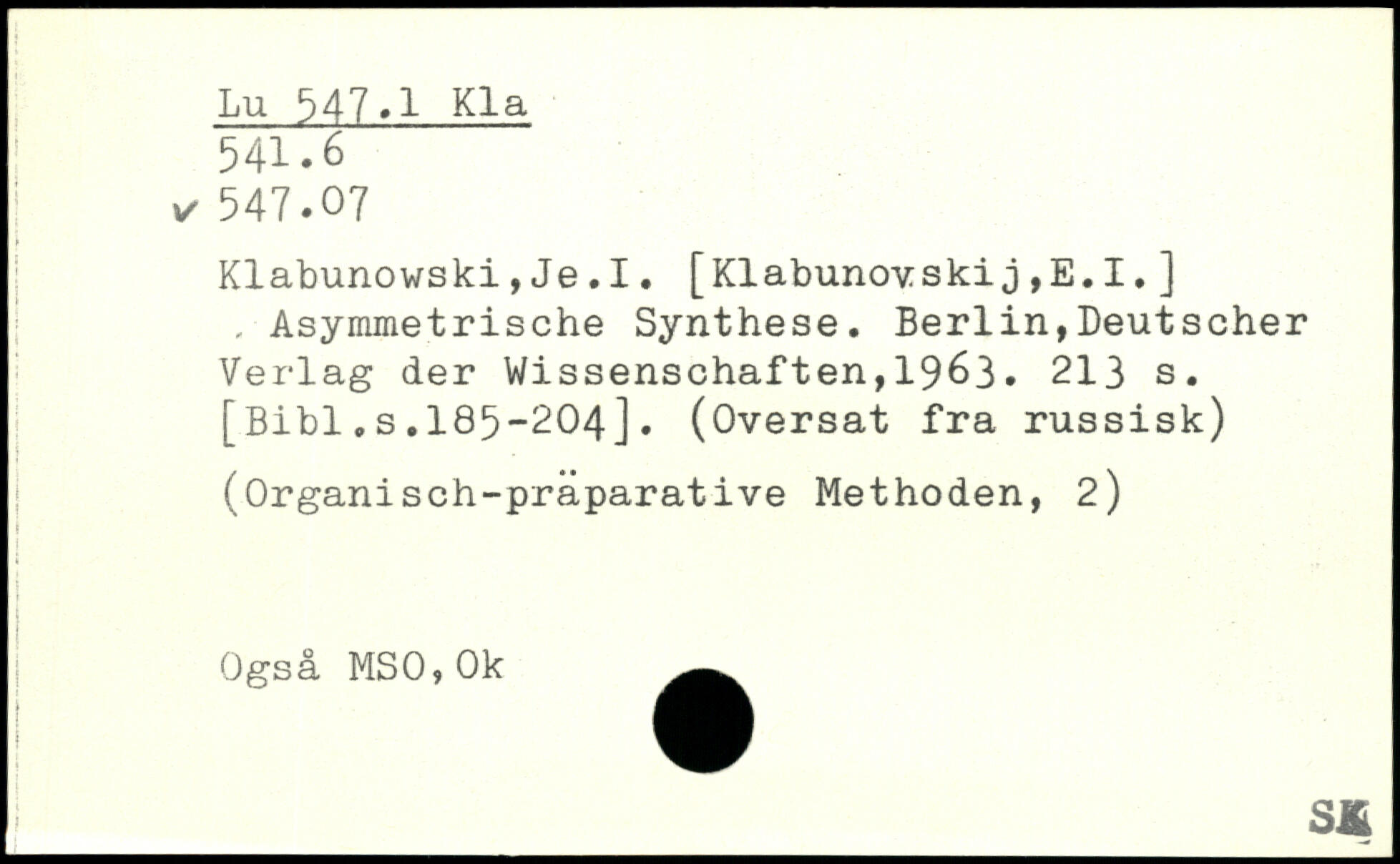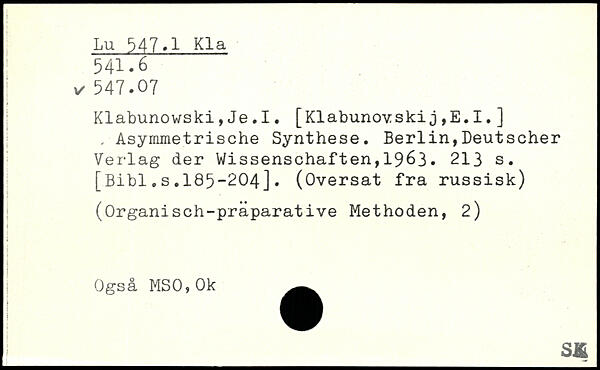 Klabunowski,Je.I. [Klabunovskij,E.I.] , Asymmetrische Synthese. Berlin,Deut scher Verlag der Wissenschaften,1963.