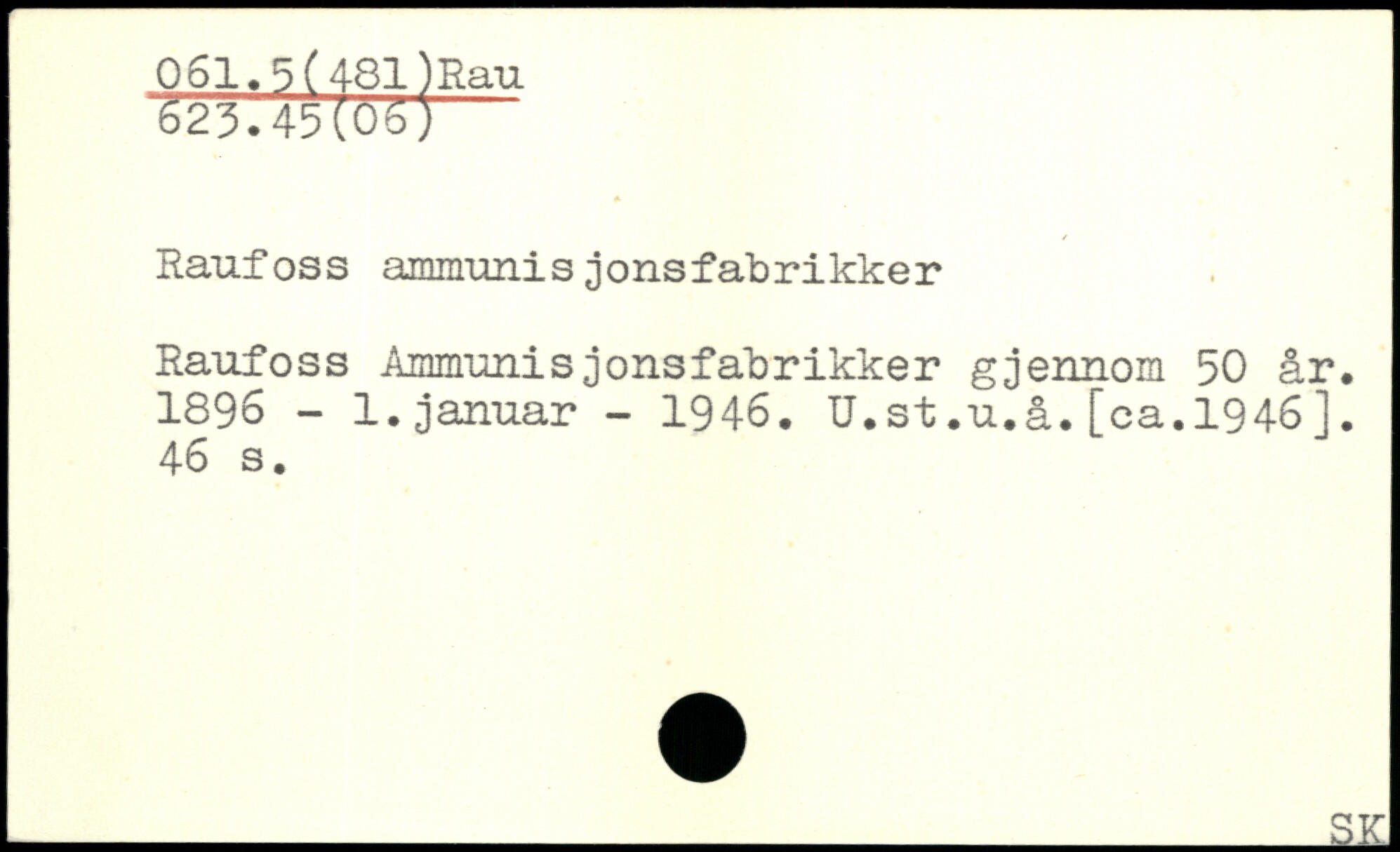 Rauf oss ammuni s jons fabrikker Raufoss Ammunisjonsfabrikker gjennom 50 år. 1896 - 1.januar - 1946. U.st.u.å.[ca.1946]