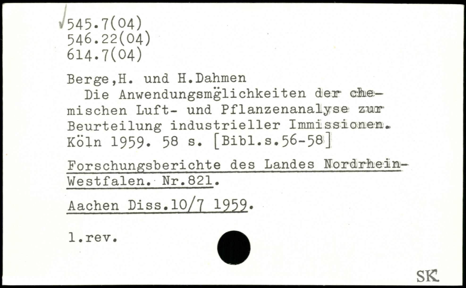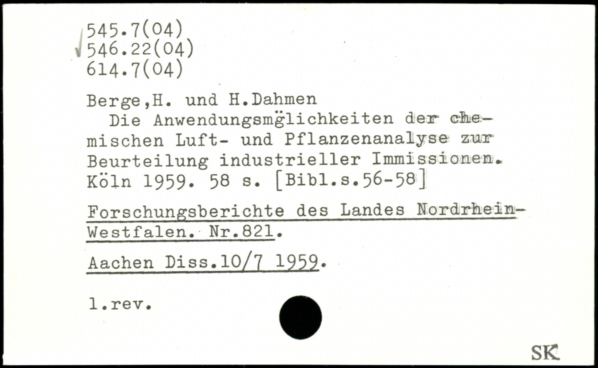 Forfatter: H. Berge, H. Dahmen