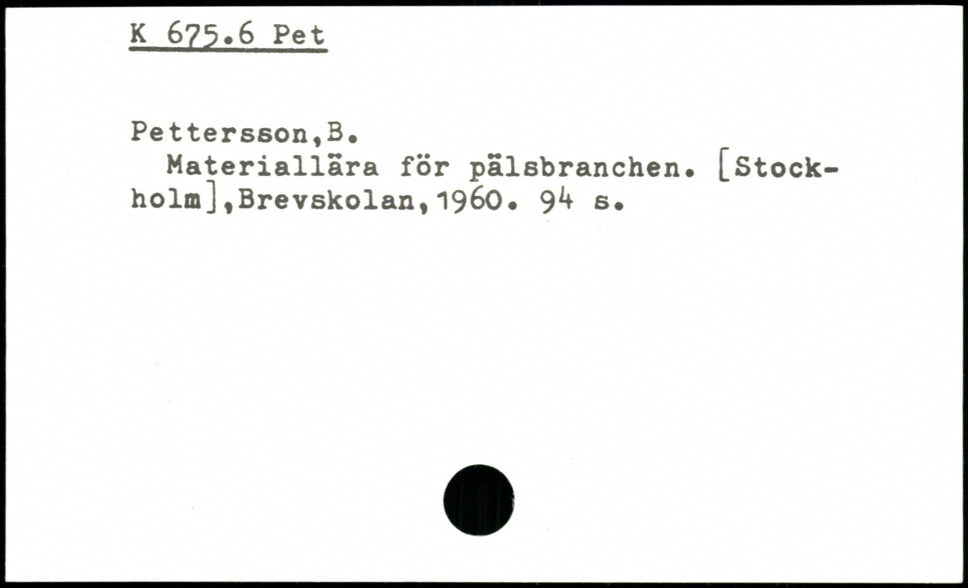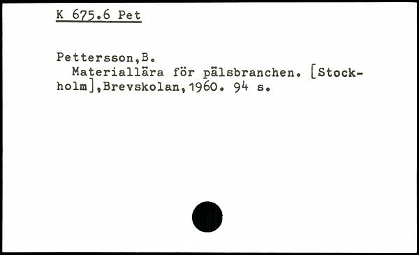 Materiallara för pälsbranchen. [Stockholm] ,Brevskolan,1960. 9^ s.
