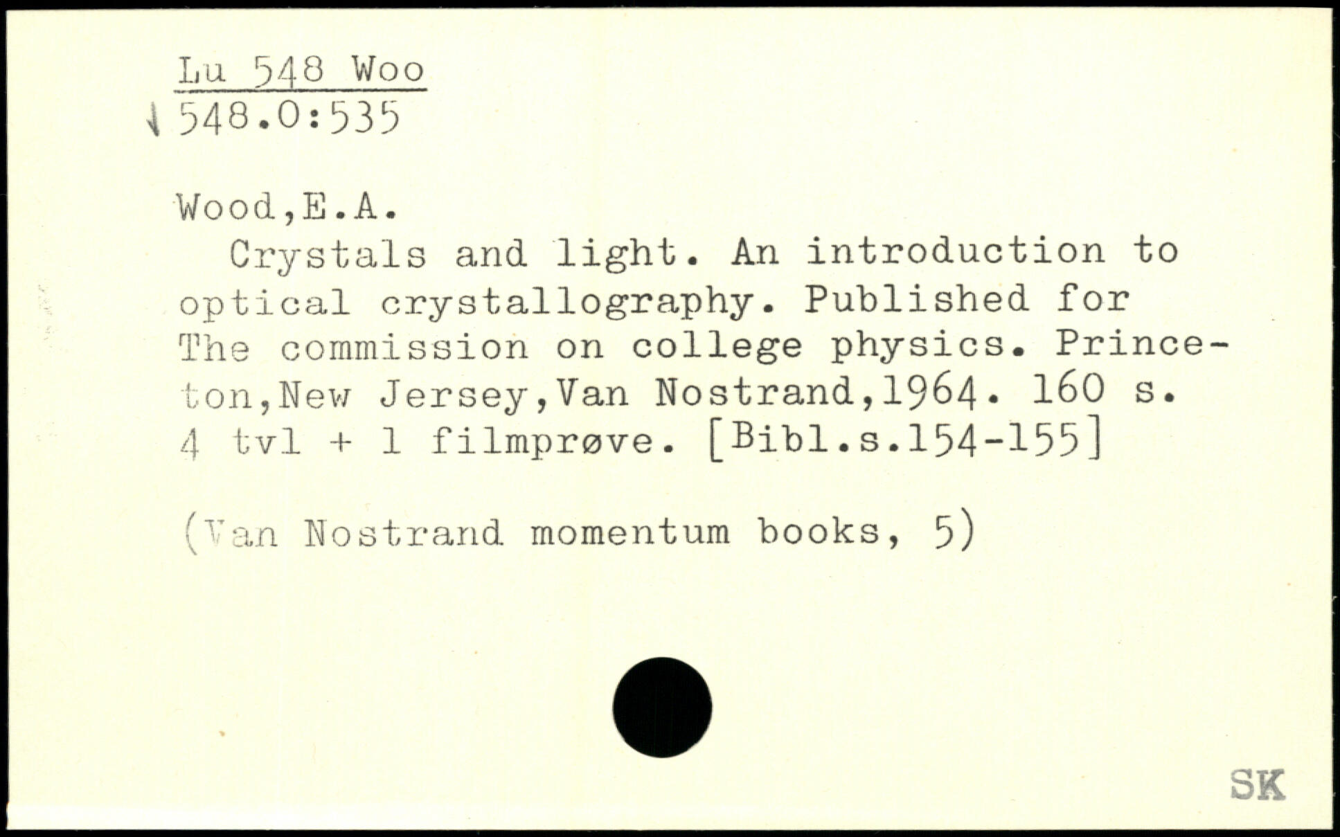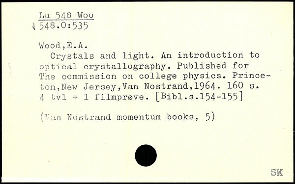 Crystals and light. An introduction to optical crystallography. Published for The commission on college physics.