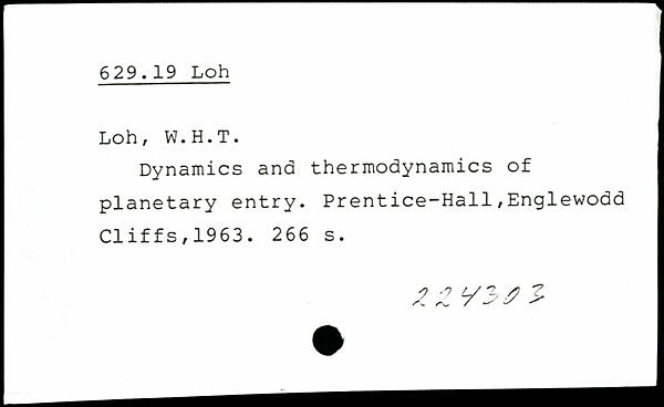 Dynamics and thermodynamics of i planetary entry. Prentice-Hall,Englewodd ; Cliffs,1963.