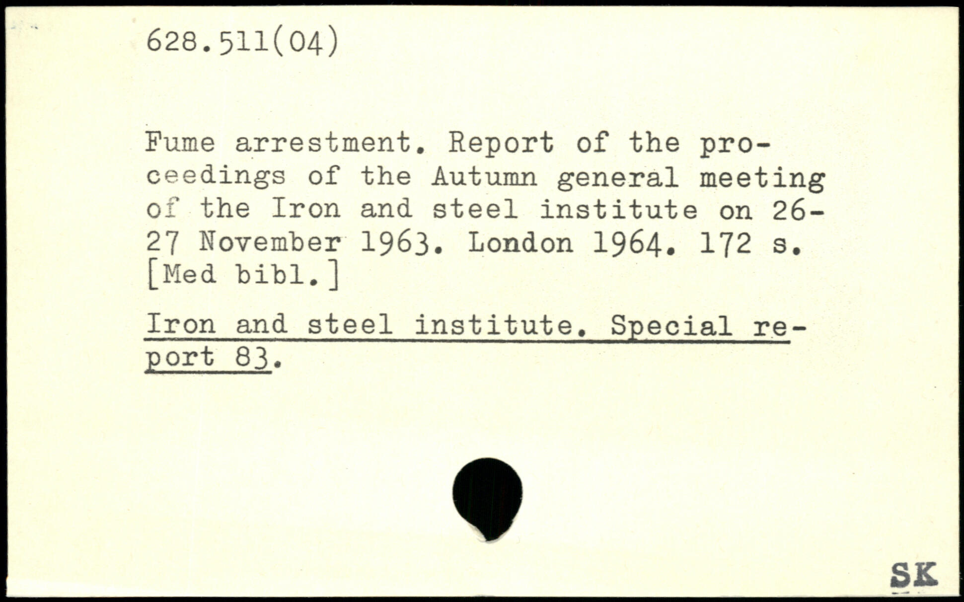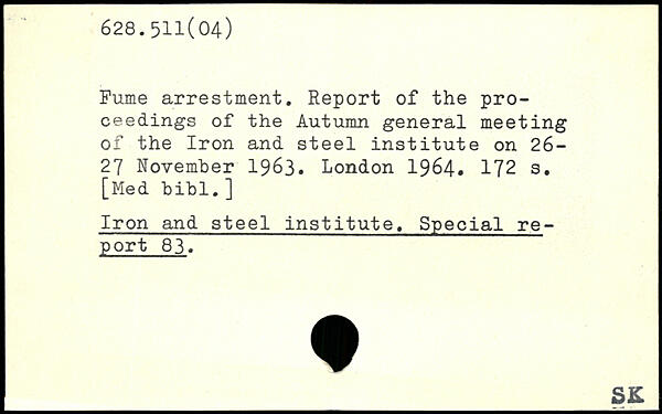 Fume arrestment. Report of the proceedings of the Autumn general meeting of the Iron and steel institute on 26- 27 November 1963.