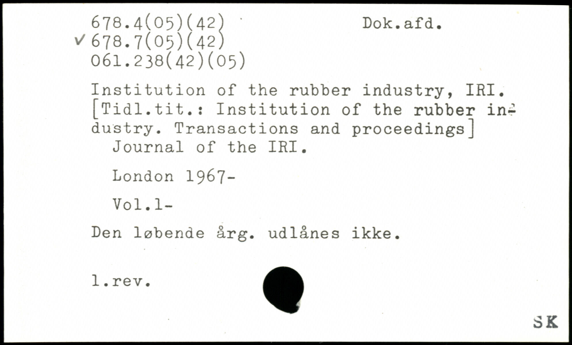 Institution of the rubber industry, IRI. [Tidl.tit.: Institution of the rubber industry. Transactions and proceedings] Journal of the IRI.