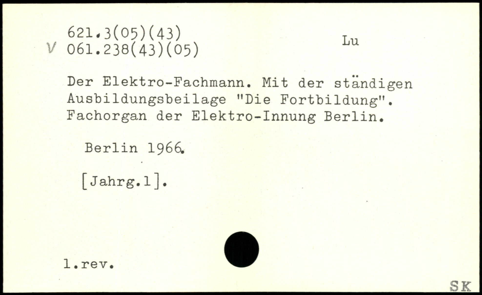 Der Elektro-Fachmann. Mit der ständigen Ausbildungsbeilage ”Die Fortbildung”. Fachorgan der Elektro-Innung Berlin.
