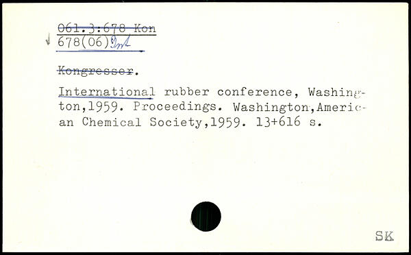 International rubber conference, Washington, 1959, Proceedings. Washington,American Chemical Society,1959. 13+6l6 s.