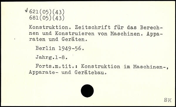 Konstruktion,, Zeitschrift für das Berechnen und Konstruieren von Maschinen, Apparaten und Geräten