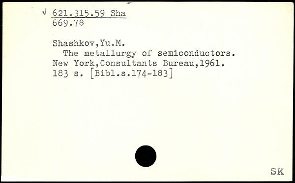 Shashkov,Yu.M. The metallurgy of semiconductors.