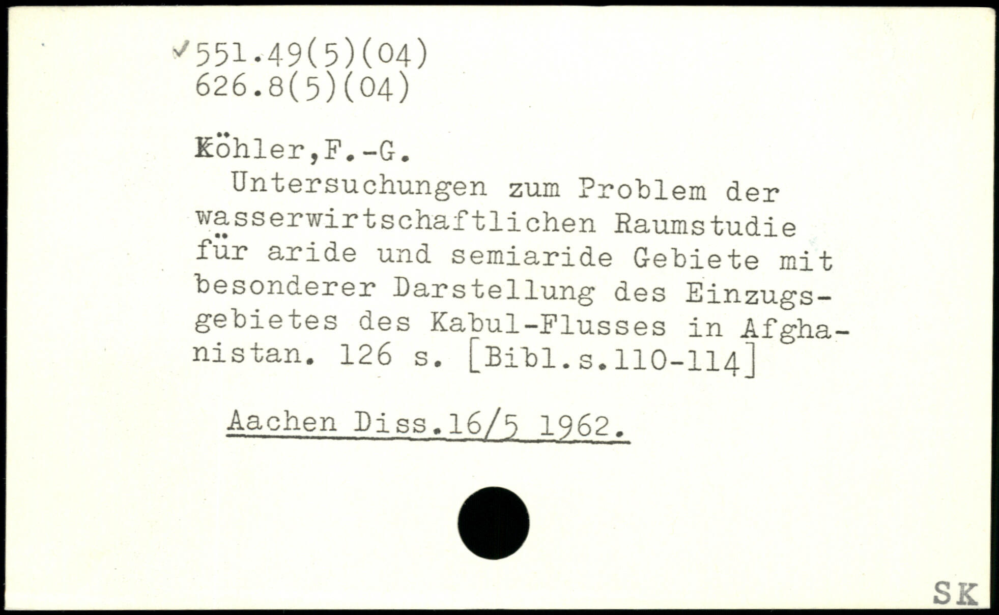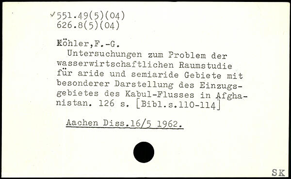 Untersuchungen zum Problem der wasserwirtschaftlichen Eaumstudie für aride und semiaride Gebiete mit besonderer Darstellung des Einzugsgebietes des Kabul-Flusses in Afghanistan.