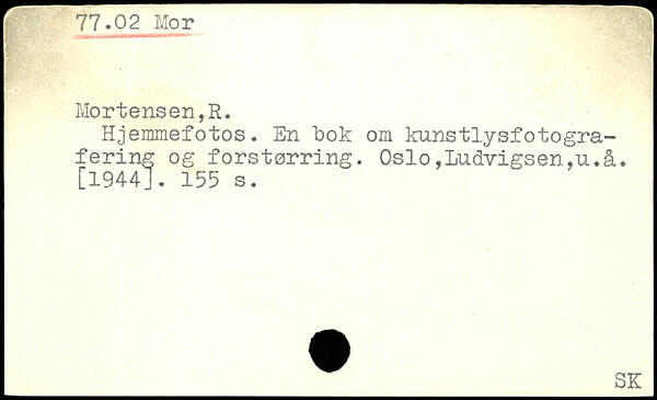 Hjemmefotos. En bok om kunstlysfotografering og forstørring. Oslo,Ludvigsen,u,å. [1944J.