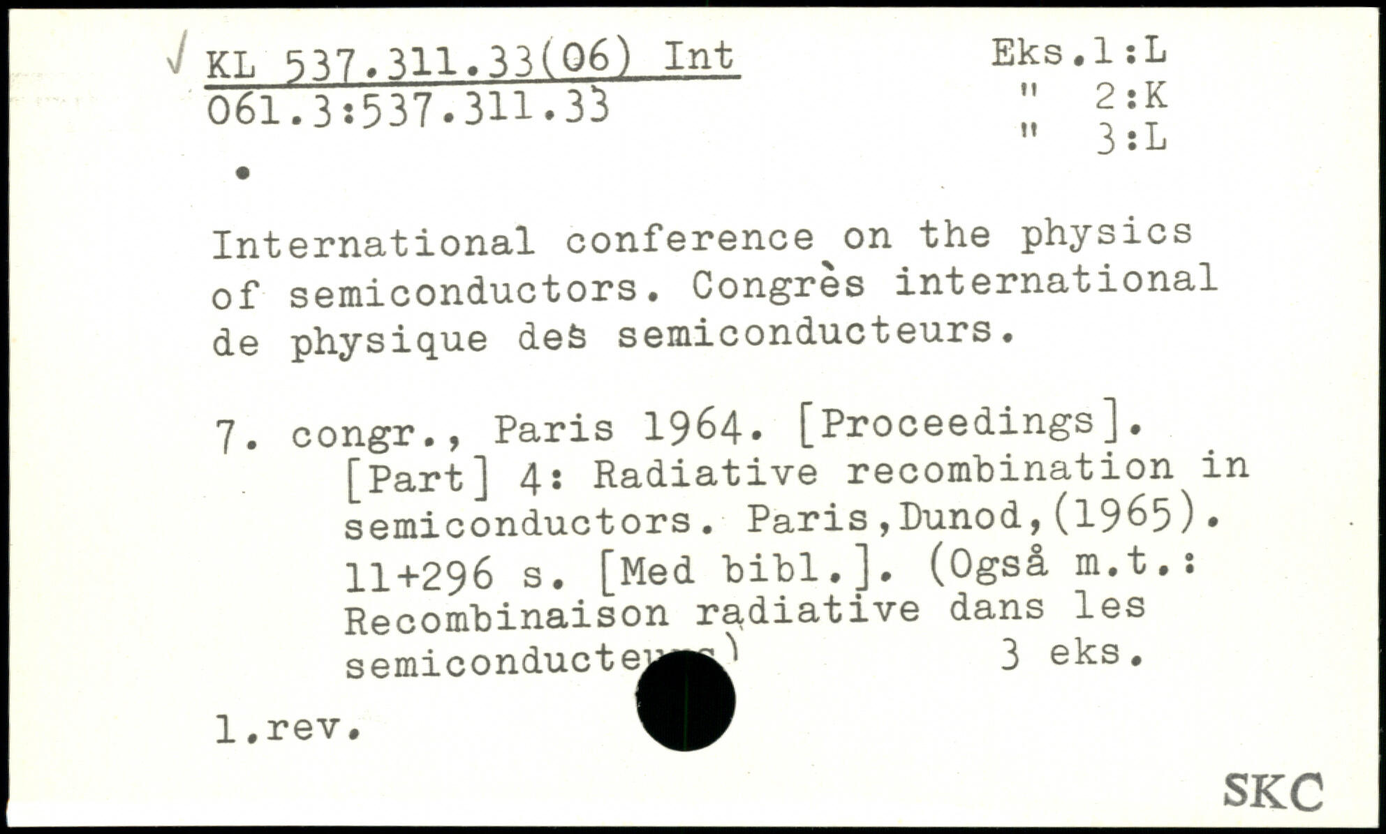 International conference^on the physics of semiconductors. Congrès international de physique de& semiconducteurs. 7. congr.