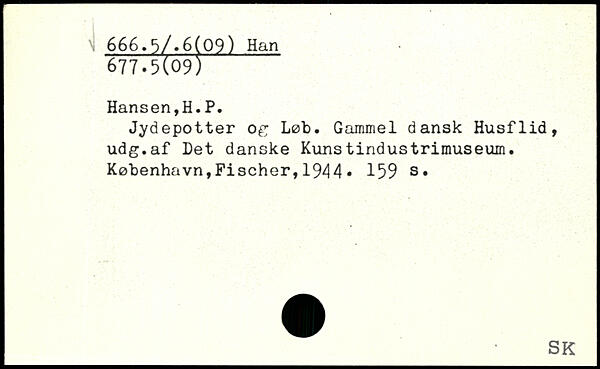 Jydepotter og Løb. Gammel dansk Husflid, udg.af Det danske Kunstindustrimuseum.