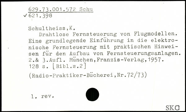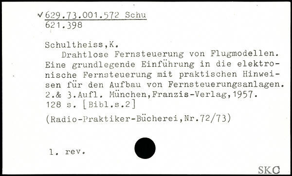 Drahtlose Fernsteuerung von Flugmodellen. Eine grundlegende Einführung in die elektronische Fernsteuerung mit praktischen Hinweisen für den Aufbau von Fernsteuerungsanlagen. 2.&