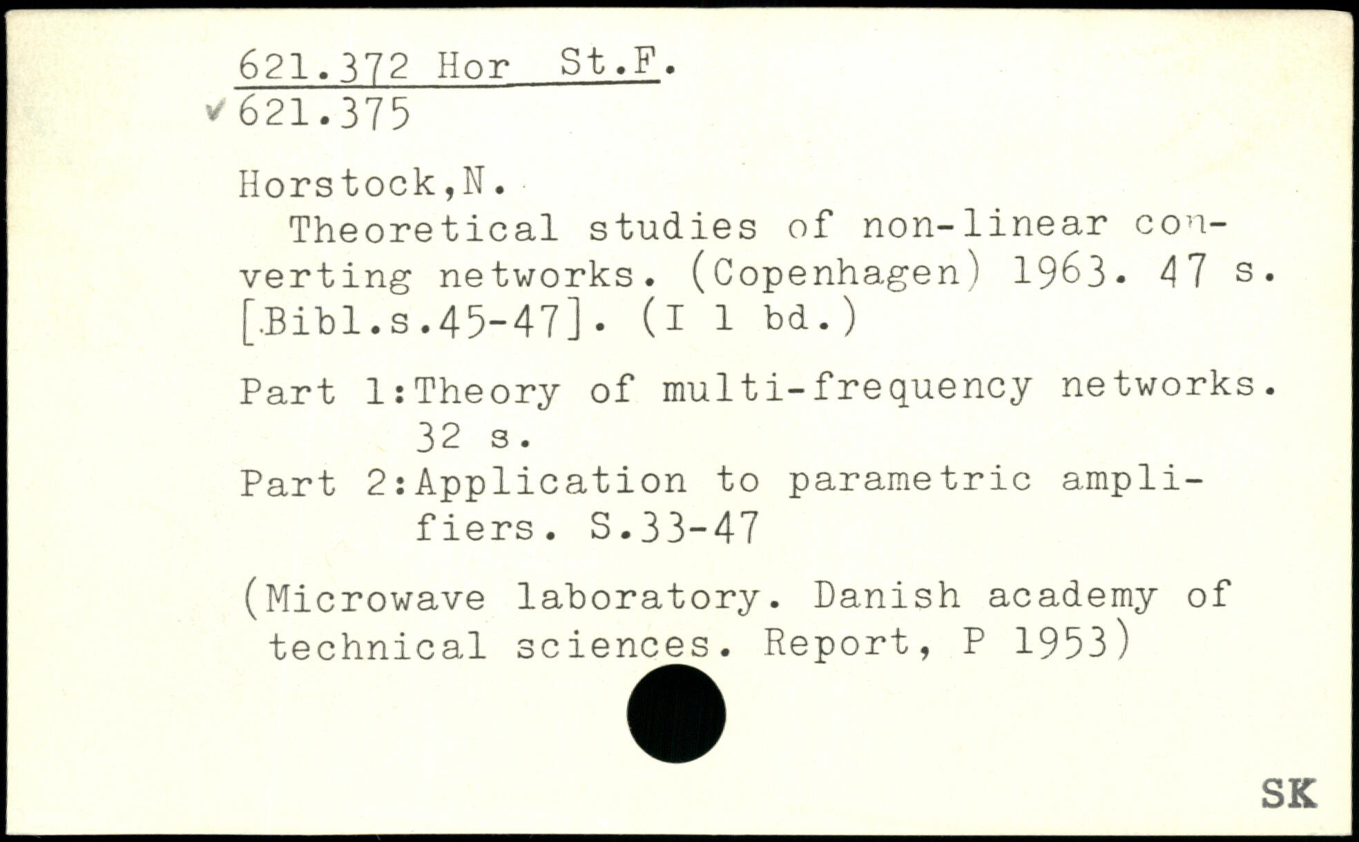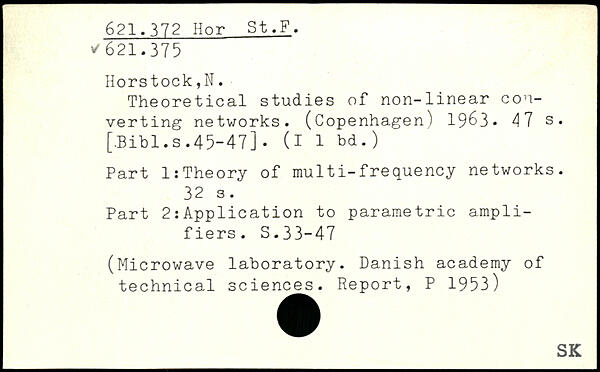 Theoretical studies of non-linear converting networks. (Copenhagen) 1963-