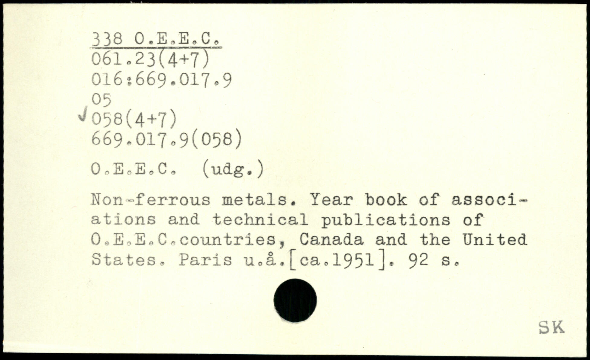 Non-ferrous metals. Year book of associations and technical publications of O.EoEeCo countries, Canada and the United States, Paris u.a,[ca.1951].